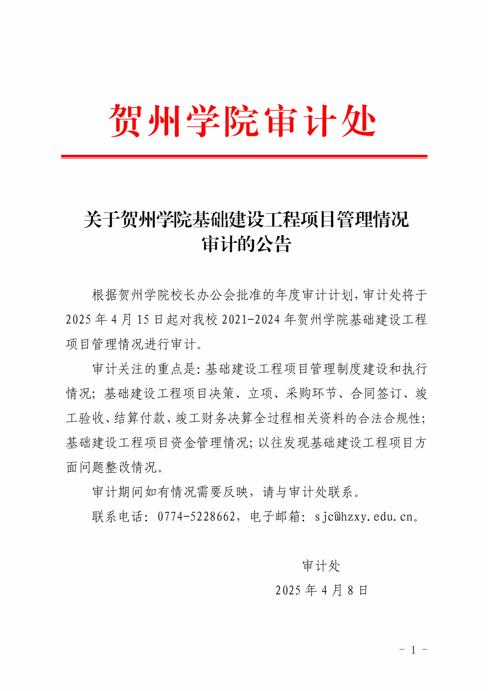 【来源:关于贺州学院基础建设工程项目管理情况审计的公告 | 发布日期:2025-11-10 】